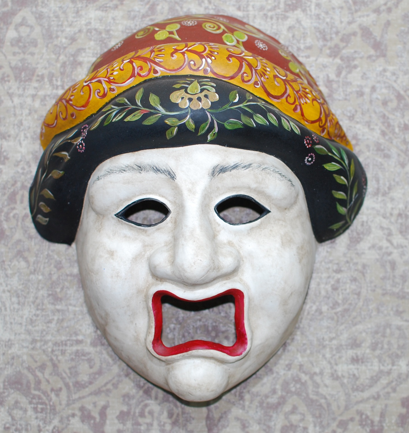 Maschera in cartapesta tradizionale. Colori e vernice opaca.